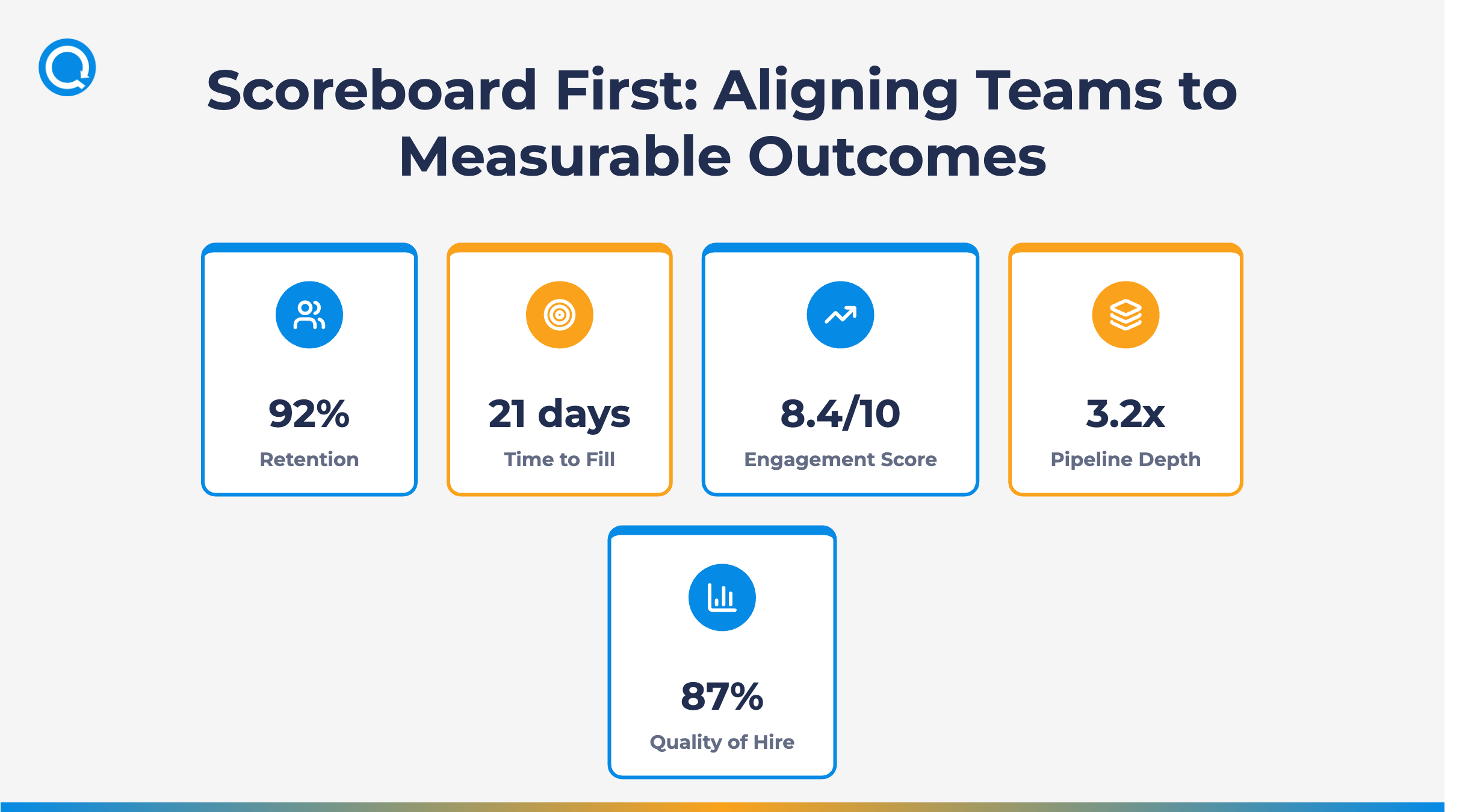 - Anchor everything to measurable outcomes. Use a scoreboard to align interviews, offers, and onboarding.