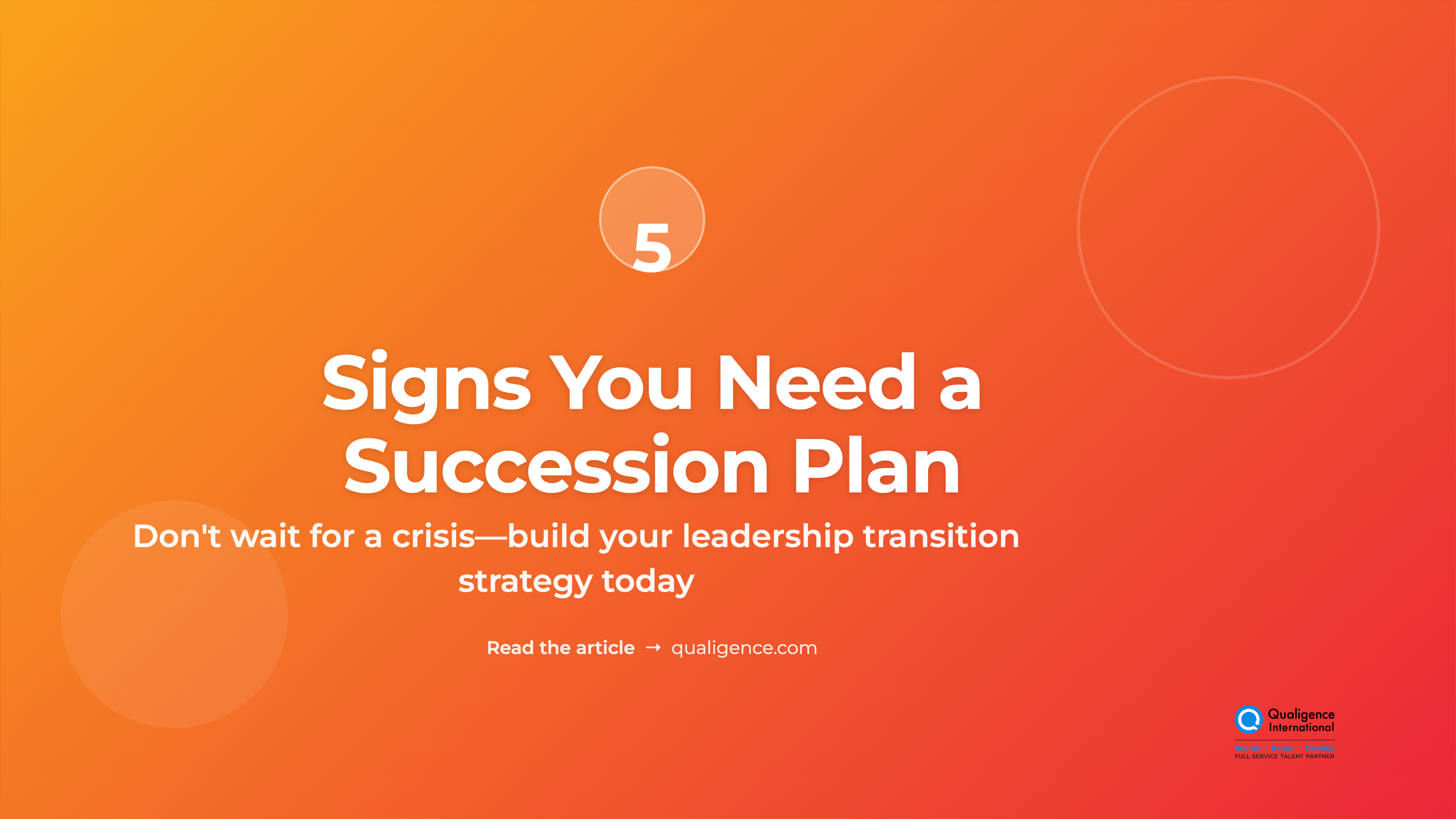 Leadership change is a matter of when, not if. The question is whether that change will be calm and prepared, or reactive and risky. A thoughtful succession plan protects performance, culture, and key role continuity. The warning signs are visible long before a surprise resignation or a health event forces your hand. This guide highlights five practical signals that your organization needs a plan now, and it shows simple next steps you can take to reduce leadership risk.